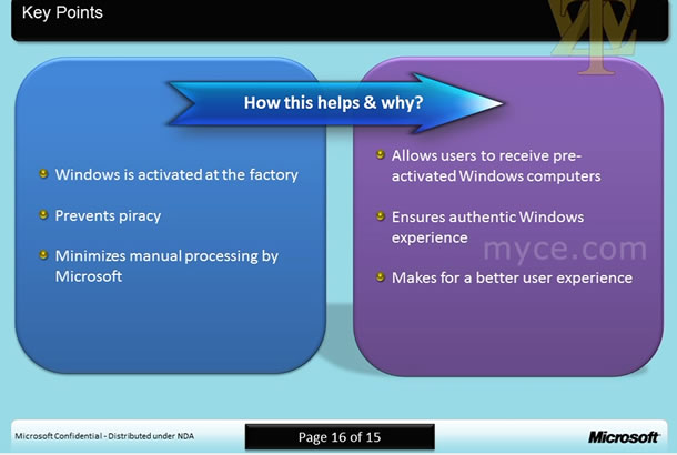 Microsoft pretende así reducir la piratería a nivel de consumo ya que los hackers han aprovechado este proceso OA para activar ilegalmente copias del sistema con una clave de licencia y también laactivación de copias ilegales a manos de los fabricantes, sin pasar por caja.